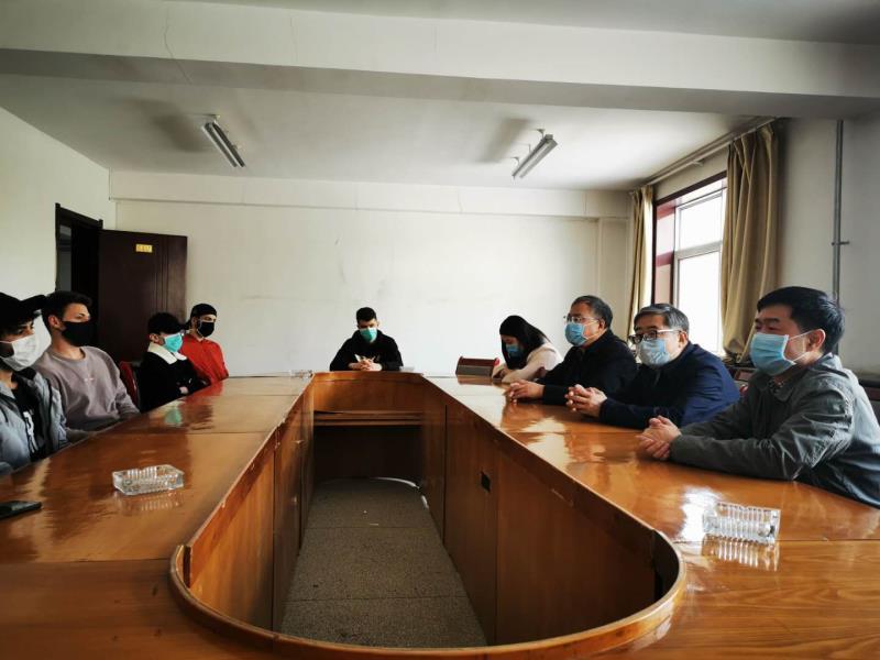 学校领导深入留学生公寓检查公共厨房等基础设施和防疫物品储备情况,在宿舍看望每位留学生,并与留学生们进行座谈交流,详细了解他们近期生活和学习情况。