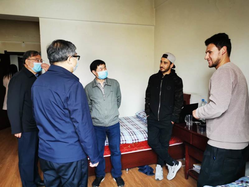 3月27日下午,学校党委书记赵凯、副校长张勇看望慰问在校留学生,并检查疫情防控工作。