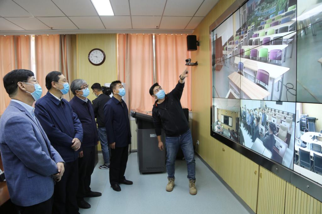 李润强一行实地查看校门管理、第二附属医院、学生公寓、餐厅、教学楼、教师教学发展中心、隔离区留观室等疫情防控重点场所,详细了解学校防控物资储备、复课后师生入校流程、应急处置等工作的安排落实情况,重点就学校应急、复学制度的规范,消毒、安全防护、人员管理措施的落实进行现场指导和座谈调研。