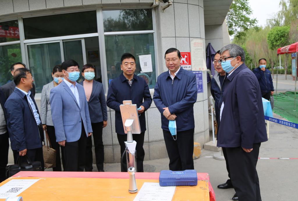 5月7日上午,张掖市委常委、宣传部长李润强、副市长马斌,带领市委宣传部、市教育局、市卫健委、市疾控中心和甘州区负责人来校检查学生返校复学准备工作。学校党委书记赵凯、校长张汉燚和相关部门负责人陪同检查,并汇报了防疫工作情况和学生返校日程安排及开学后教育教学工作。