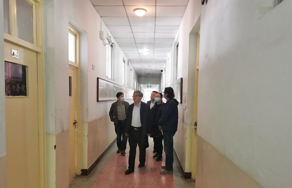 赵凯实地查看了音乐厅、体育训练馆、各学院教学楼及教室的消杀和值班情况。各学院负责人对疫情防控、学生返校、毕业生就业、线上教学、师资队伍状况和教师值班安排、学生就餐、正常教学、突发应急事件处置等工作作了简要汇报。