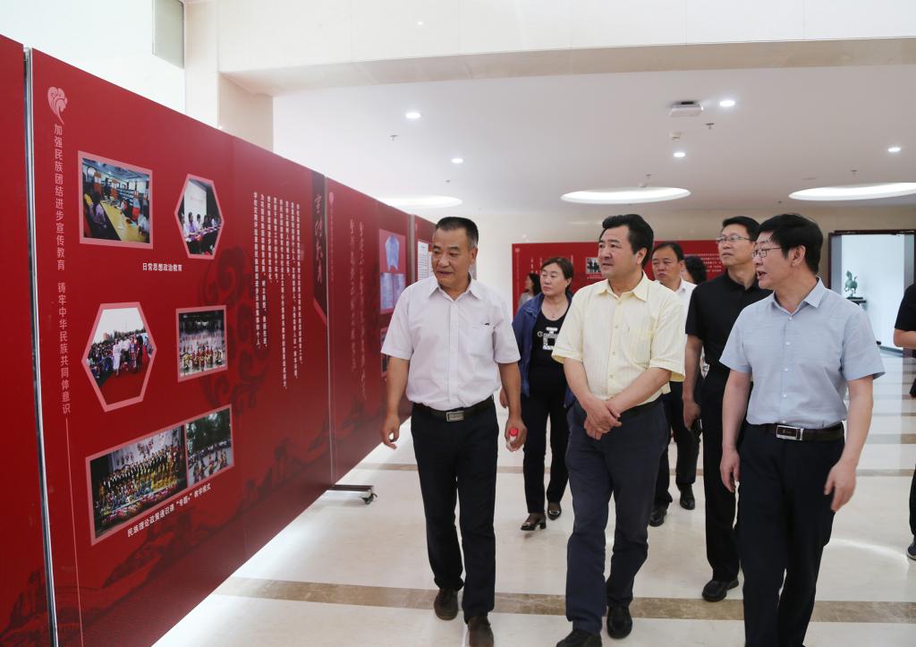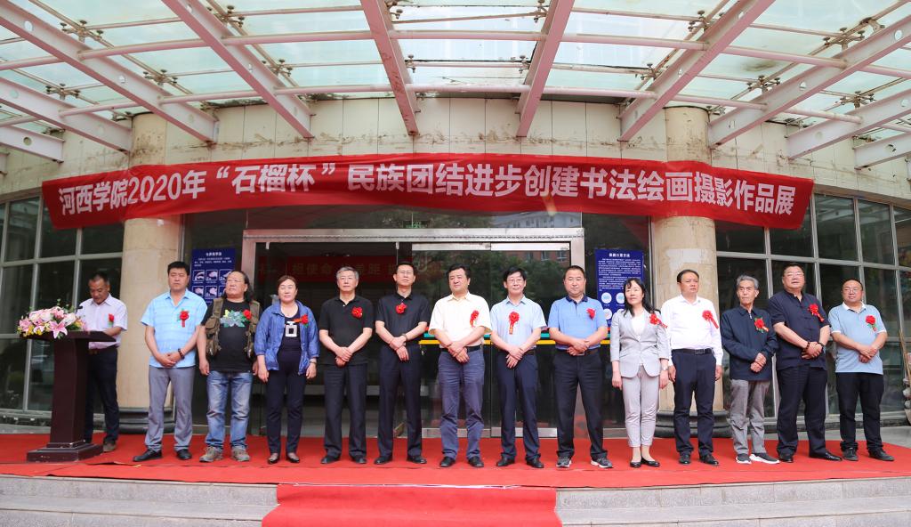 马虎成一行还参观了艺术创意中心、民族文化大道,民族文化长廊、民族雕塑群、民族文化壁画,河西历史文化馆;参加石榴树培土浇水活动、“石榴杯”民族团结进步创建书法绘画摄影作品展开幕式并剪彩;观看了民族学生社团文化活动和民族体育文化活动、创建成果图片展、原创歌舞剧《裕固风华》排练、学校创建全国民族团结进步示范单位专题片。