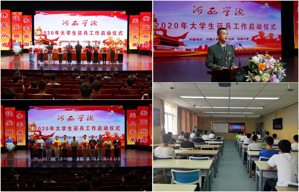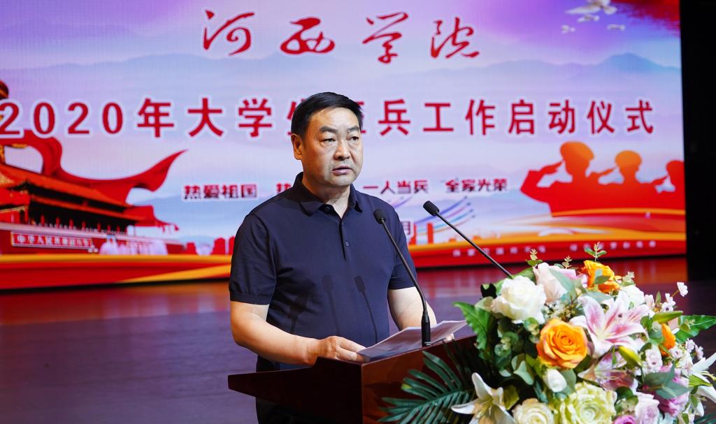 6月19日,9001cc金沙以诚为本2020年大学生征兵工作启动仪式在河西讲堂举行。张掖市常委、张掖军分区司令陈平,学校党委常委、副校长徐德祯,甘州区常委、武装部部长舒朝选,甘州区武装部政治委员陈艺,学校武装部、二级学院主管大学生征兵工作负责人、辅导员,大学生征集对象参加了大会。启动仪式采取主会场、分会场与网络平台直播相结合的方式进行。