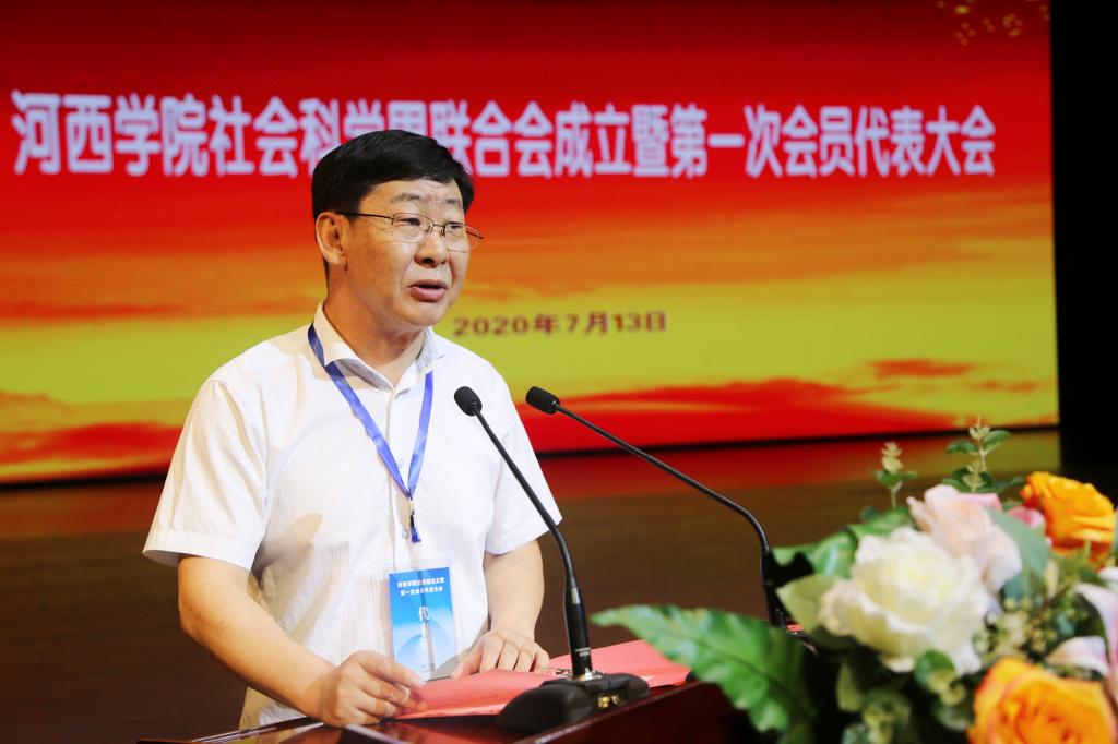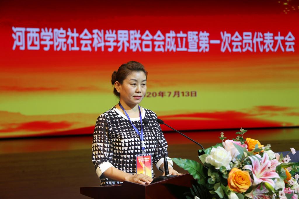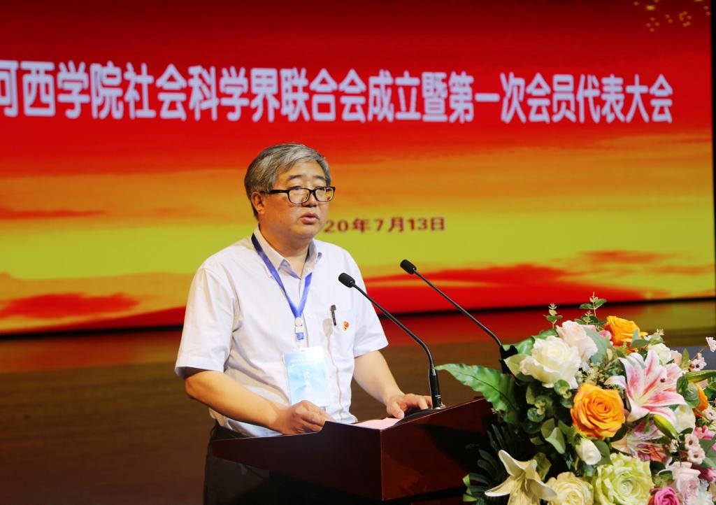 校长张汉燚代表学校致辞,对社科联的成立表示热烈祝贺。他指出,近年来,学校坚持“作河西文章、出特色成果、建丝路名校”的办学目标和“质量立校、人才强校、科研兴校”的发展战略,深入推进教育教学改革,积极推动人文社科理论研究和实践应用,科研成果质量与数量稳步提升,学校办学实力和社会影响力不断扩大。目前,学校正处于“申硕建大”的关键时期,成立社科联组织,必将进一步凝聚全校哲学社会科学力量,为理论研究、学术交流、学科建设和人才培养、服务社会搭建更加广阔的平台。学校将紧抓机遇,充分发挥哲学社会科学在人才培养中的重要作用,把科学研究与人才培养紧密结合起来,为繁荣发展全省哲学社会科学和服务地方经济社会发展做出更大的贡献。