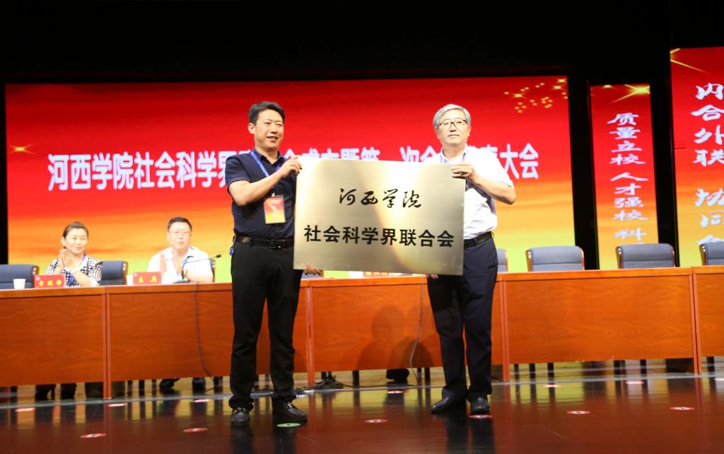 省社科联学会管理部部长孟广成向学校社科联授牌。