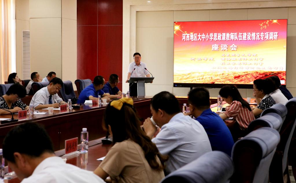 受省教育工委委托,河西地区大中小学思政课教师队伍建设情况专项调研座谈会7月12日上午在河西讲堂举行。校党委副书记王兵,河西五市教育部门负责人、大中小学负责人及思政课教师代表,学校宣传部、教务处、学生处、团委等部门负责人,马克思主义学院全体教师参加了座谈会。座谈会由马克思主义学院负责人主持。