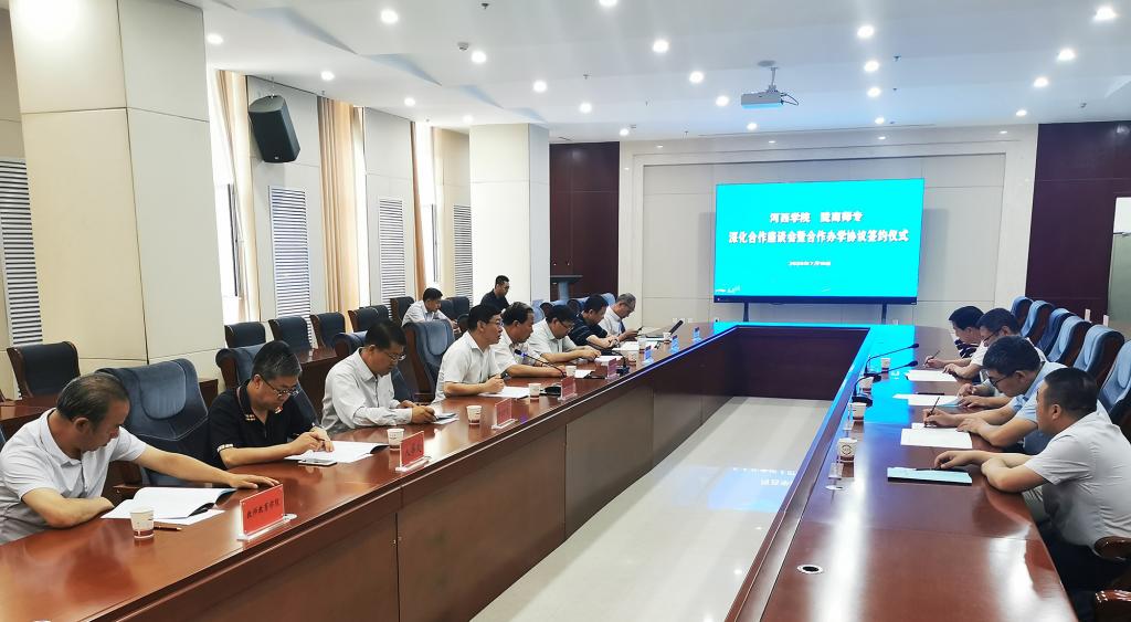 7月15日上午,陇南师范高等专科学校党委书记余学军一行来校考察,洽谈校际合作有关事项。党委书记赵凯、副校长顾长兆,以及办公室、教务处、财务处、人事处、发展规划处、金沙、信息化建设管理中心负责人参加座谈会,座谈会由校长张汉燚主持。
