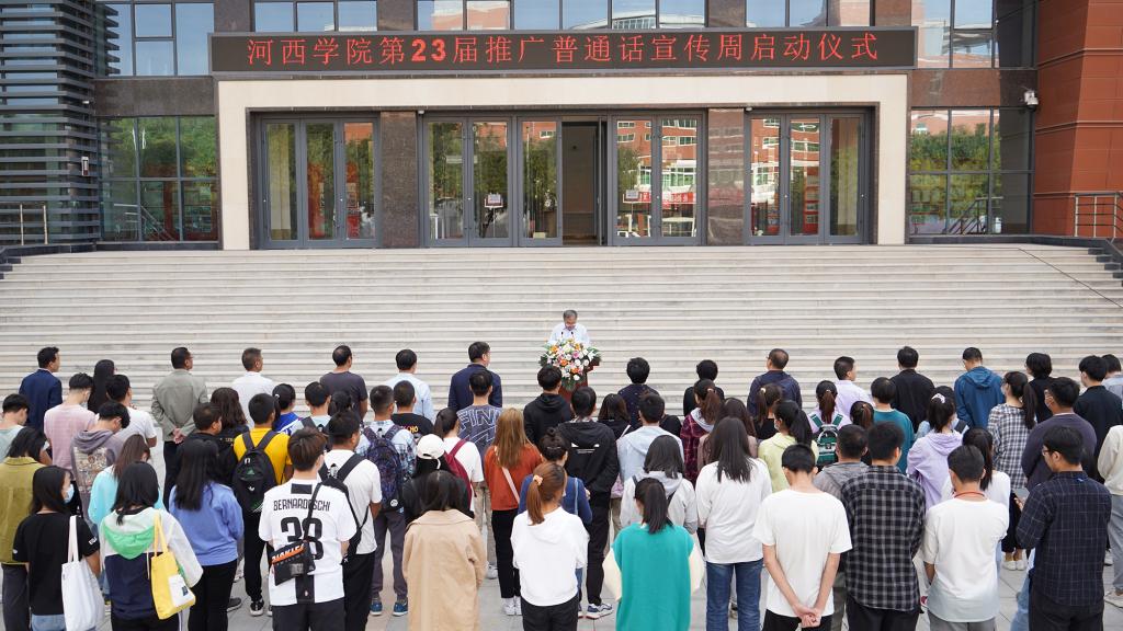 9月14日下午,学校第23届推广普通话宣传周启动仪式在河西讲堂举行。学校党委常委、语委主任、副校长张勇出席启动仪式。宣传部、办公室、教务处、学工部、团委等部门负责人,各二级学院院长、辅导员,校语委全体成员,学生代表100余人参加了启动仪式。学校党委常委、语委副主任、教务处处长赵柱主持启动仪式。
