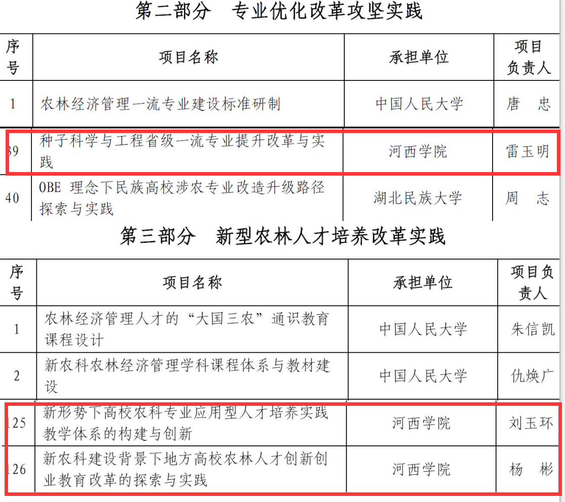 新农科研究与改革实践项目是教育部为深入贯彻落实习近平总书记给全国涉农高校书记校长和专家代表重要回信精神,以新农科建设为统领,推进高等农林教育创新发展的重要举措。