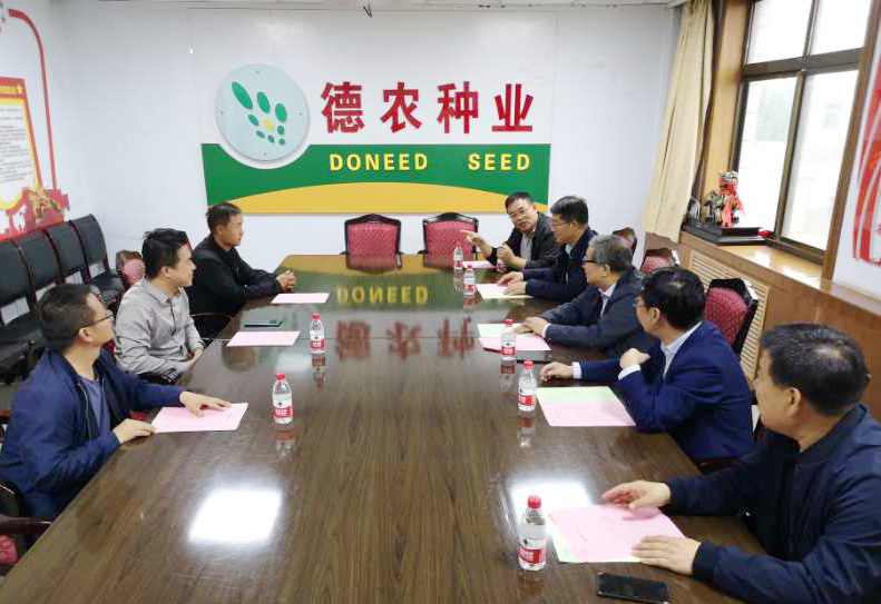 赵凯、张汉燚一行先后来到张掖西大湖现代农业开发有限责任公司和北京德农种业股份公司张掖分公司,听取了公司和乡镇负责人对发展旱稻产业和玉米制种产业的情况汇报,详细了解旱稻种植和制种玉米水肥药一体化试验示范研究工作进展情况,实地参观查看了张掖西大湖现代农业开发有限责任公司旱稻种植基地、北京德农种业股份公司张掖分公司玉米种子检测实验室和玉米种子加工生产线,并为甘肃省河西地区农作物水肥药一体化工程研究中心旱稻试验示范基地揭牌。