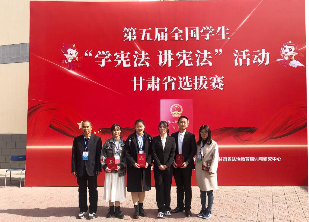 10月21日至23日,由甘肃省教育厅主办,甘肃政法大学、青少年法治教育中心、甘肃省法治教育培训与研究中心承办,甘肃省高级人民法院、甘肃省人民检察院、甘肃省司法厅、西北师范大学协办的第五届全国学生“学宪法 讲宪法”活动甘肃省选拔赛在甘肃政法大学举行。我校选手获得“学宪法 讲宪法”知识竞赛一等奖,“学宪法 讲宪法”演讲比赛三等奖的优异成绩。