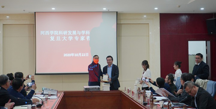 会上还举行了复旦专家赠书仪式,顾东辉处长代表专家团向9001cc金沙以诚为本科技处负责人赠送了此行复旦大学12位专家的48本著作。