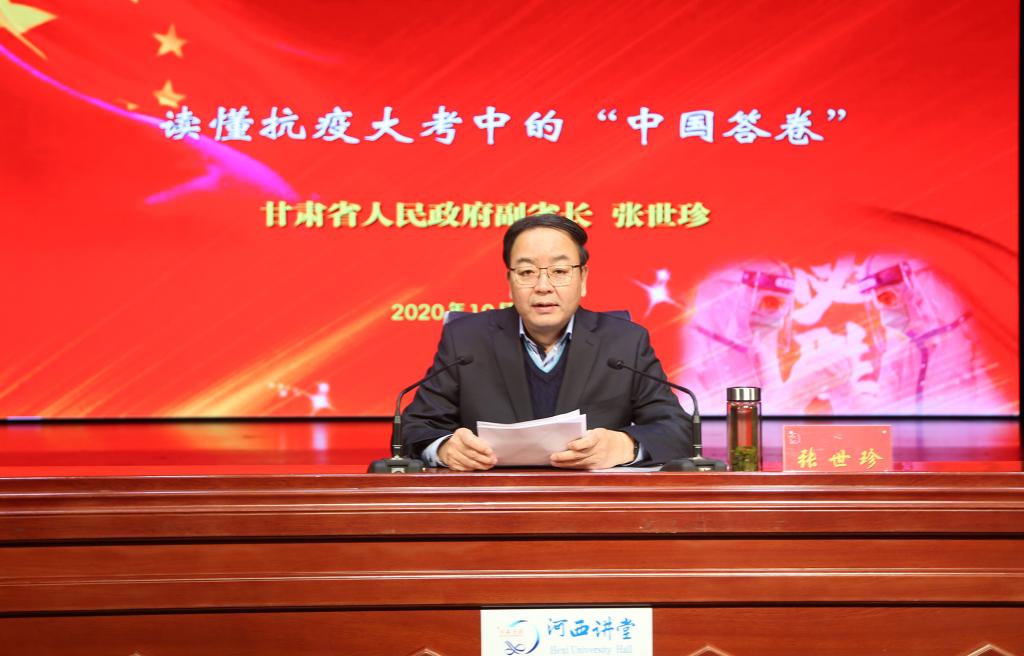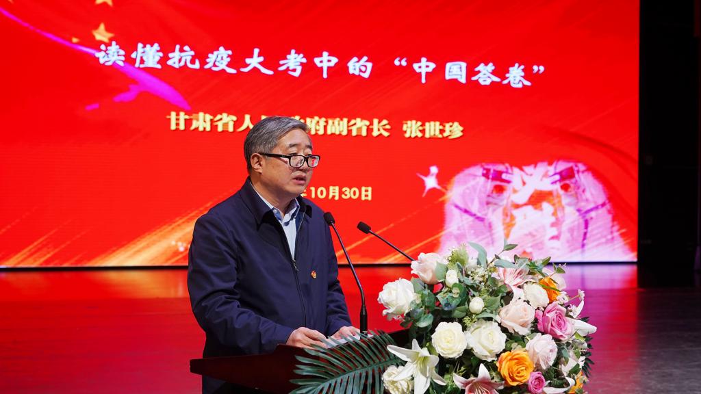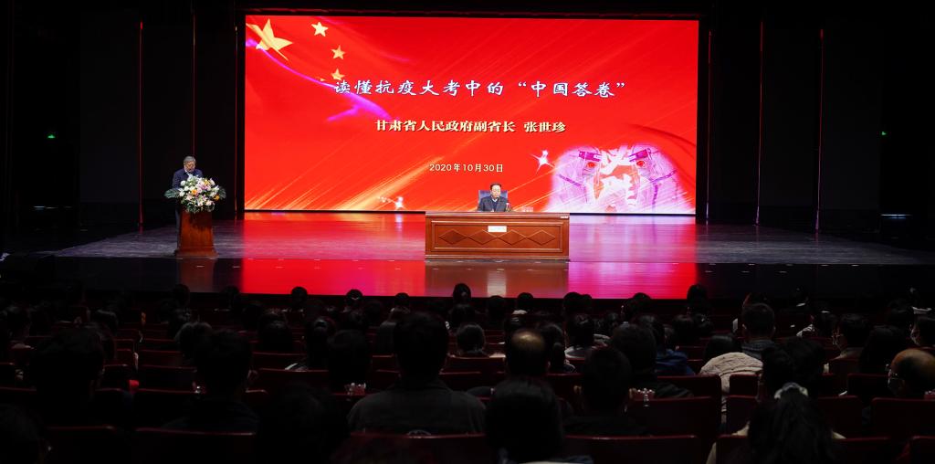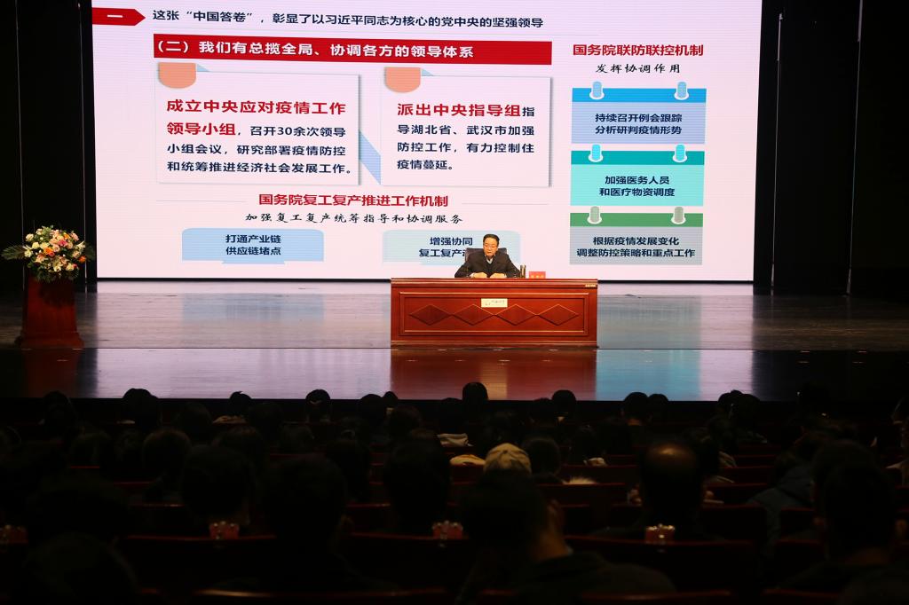 10月30日上午,省人民政府副省长张世珍在9001cc金沙以诚为本作题为《读懂抗疫大考的“中国答卷”》的形势与政策专题报告。