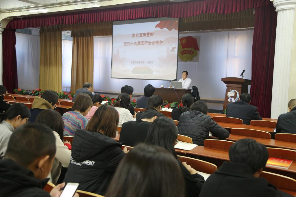 报告会上,杨晓军以《学习宣传贯彻党的十九届五中全会精神》为题,从全会召开的时代背景、主要成果、起草情况、特点亮点、决胜全面建成小康社会取得的决定性成就、我国发展环境面临的深刻复杂变化与应对、二O三五年基本实现社会主义现代化远景目标、“十四五”时期经济社会发展指导思想和必须遵循的原则、重点任务、五中全会精神的核心要义、必须坚持党的全面领导等八个方面作了系统全面的讲授辅导,对于党员干部深刻领会和准确把握五中全会的基本内容和精神实质,切实把五中全会精神贯彻落实到学校管理、改革、发展实践中,具有很大启发和帮助作用。