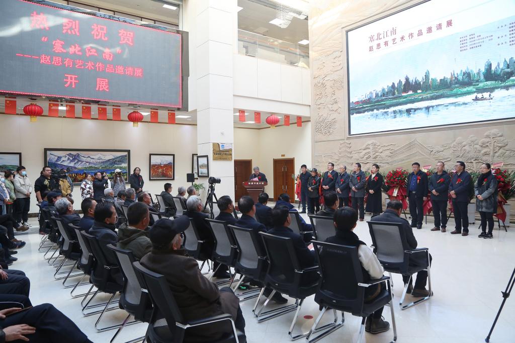 开幕式上,副校长张勇和中共张掖市委宣传部副部长索晓静分别致辞,赵思有先生致答谢词并向张掖市美术馆、甘州区文联赠送作品,著名版画家胡有全先生宣布展览开幕。
