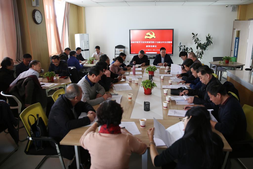 为深入学习贯彻党的十九届五中全会精神,准确把握全会精神实质,切实把思想和行动统一到党中央和省委,省教育工委决策部署上来,自觉用全会精神武装头脑、指导实践、推动工作。11月25日下午,学校召开学习宣传贯彻党的十九届五中全会精神部署安排会,相关部门和二级党组织负责人参加会议,党委副书记王兵主持会议并讲话。