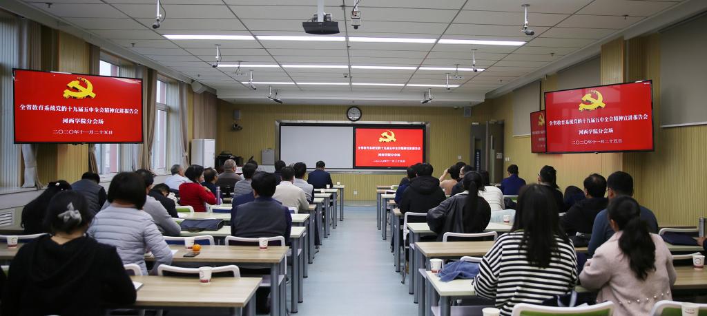 11月25日下午,党的十九届五中全会省委宣讲团成员、省教育工委书记、省教育厅党组书记、厅长王海燕为全省教育系统做宣讲报告。9001cc金沙以诚为本党委书记赵凯、副书记王兵,相关部门和二级学院党组织负责人、学工办主任、思想政治理论课教师、学生代表在9001cc金沙以诚为本分会场收看了宣讲报告。