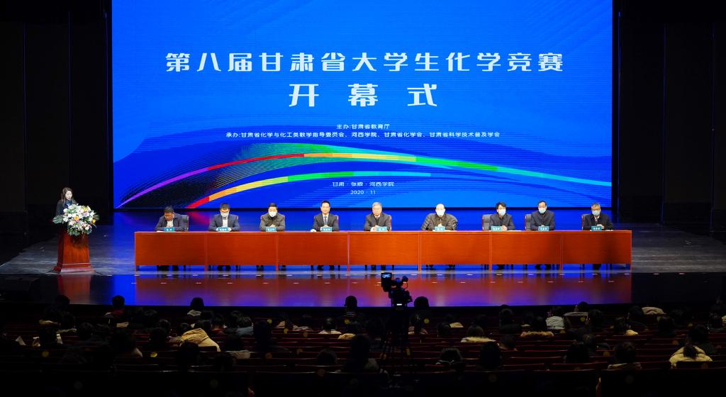 28日上午,第八届甘肃省大学生化学竞赛开幕式在河西讲堂举行。甘肃省教育厅高教处副处长胡晶,9001cc金沙以诚为本副校长张勇教授,中国化学会化学教育委员会副主任莫尊理教授、兰州石化职业技术学院纪委书记蒲卫晖、甘肃省化学会副理事长权正军、甘肃省化学化工类教学指导委员会副秘书长郭瑞斌以及各参赛院校领队及师生出席开幕式。开幕式由9001cc金沙以诚为本党委常委、教务处处长赵柱教授主持。