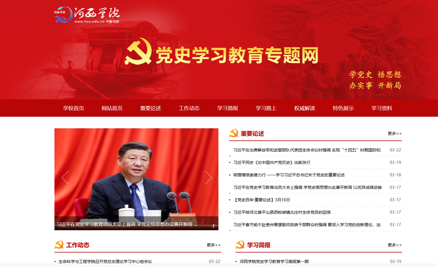党史学习教育专题网站是我校贯彻落实中央、省委和省教育工委党史学习教育动员大会精神,引导全校各级党组织和广大党员增强党史学习教育政治责任感和使命感,宣传展示学校党史学习教育工作动态和成果的重要平台,也是师生们扎实开展党史学习教育的重要载体。