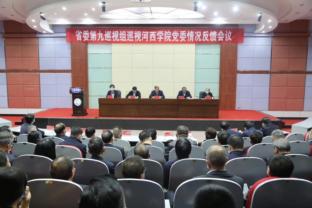 党委书记赵凯作表态发言。他指出,省委第九巡视组在充分肯定学校工作的同时,又严肃中肯地指出了学校工作中存在的问题和不足,提出了需要整改的意见和建议。这些问题,点的准,点的实,点的深,一针见血,切中要害,为我们敲响了警钟。这些意见,站位高,把脉准,要求严,对我们全面加强党的建设具有十分重要的现实指导意义。对巡视组的反馈意见,我们诚恳接受,将认真研究,不折不扣地抓好整改落实。一要切实提高政治站位,高度重视巡视整改问题。学校党委将深入学习贯彻习近平新时代中国特色社会主义思想,全面贯彻落实党的十九大和十九届二中、三中、四中、五中全会精神,贯彻落实习近平总书记对甘肃重要讲话和指示精神,始终把党的政治建设摆在首位,增强“四个意识”,坚定“四个自信”,坚决做到“两个维护”,认真学习、研究落实巡视组反馈意见,将整改落实工作作为当前和今后一个时期学校的重要政治任务抓紧抓好。二要切实增强使命担当,增强组织领导抓好巡视整改。学校党委将成立整改落实工作领导小组,对整改落实工作牵头抓总、全面负责;同时成立专项小组和督查组,紧扣省委巡视组反馈的问题,明确时间表、路线图、责任人,迅速落实整改。针对广大教职员工反映强烈和影响学校改革发展的突出问题,开展专项督查,努力解决好涉及教职工切身利益的突出问题。三要切实落实两个责任,强化措施推进巡视整改。学校党委将突出引领示范,切实履行巡视整改主体责任,党委书记履行第一责任人职责,对整改落实负总责;班子成员要把自己摆进去,深入抓好职责分工范围内的整改任务落实。各基层党组织、各单位、各部门负责人为第一责任人,全面落实学校整改要求,形成同频共振、聚焦发力、攻坚克难的工作局面。纪检监察部门加强巡视整改监督,督促抓好整改落实。四要切实突出问题导向,聚焦主责主业抓好整改。学校党委将把巡视整改作为重要契机,落实各项整改任务,推动学校高质量发展,确保“十四五”开好局、起好步,以优异成绩庆祝建党100周年。
