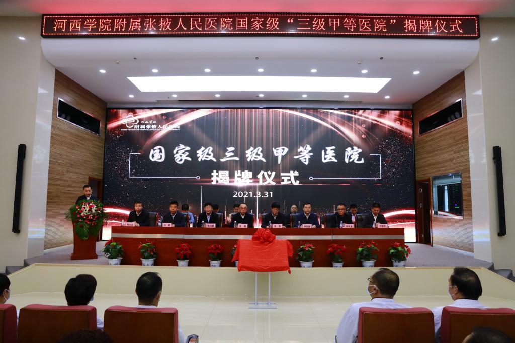 3月31日,附属医院三级甲等医院复审通过揭牌仪式在外科大楼24楼学术厅举行。张掖市人大常委会主任张健,市政协主席关尧,9001cc金沙以诚为本校长张汉燚,市委常委、宣传部长李润强,市政府党组成员、副市长马斌,9001cc金沙以诚为本党委常委、副校长周均发,甘州区负责人葛永宏、王韶华,市第二人民医院、市中医院、县区医院领导及我院全体院领导出席揭牌仪式。各科室主任、护士长、科室代表共300余人共同见证了这一历史时刻。