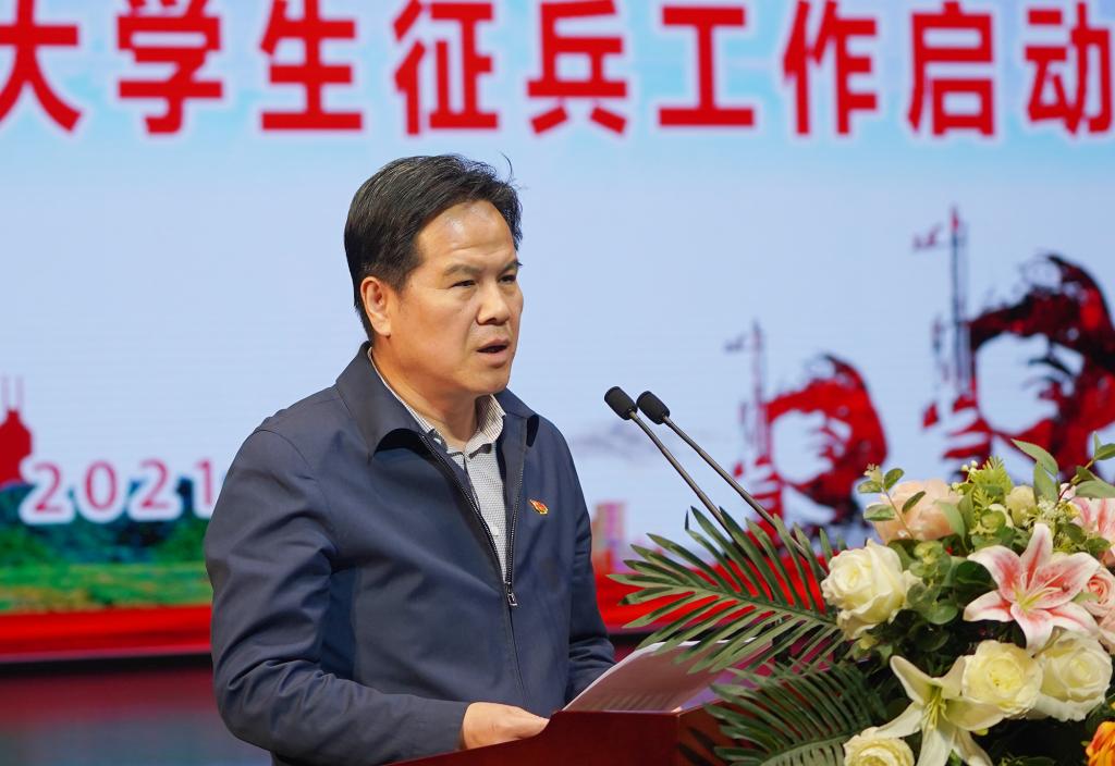 狄生奎在讲话中指出,近年来,学校高度重视学生征兵工作,形成“1234”工作方法,抓好三支队伍,做实“三进”活动,一批批青年学子携笔从戎、保家卫国、建功军营、捷报频传。对下一步工作,狄生奎要求,一是提高政治站位,认清形势任务,切实增强征兵工作的使命担当。要深入贯彻落实习近平总书记国家安全、国防建设等系列讲话精神,切实增强做好学生征兵工作的责任感和使命感。二是熟悉征兵政策,深入宣传发动,充分调动学生的参军热情,要学好吃透2021年政策,当个政策“明白人”;要充分宣传好政策、解读好政策;要突出征集主体毕业生,把参军入伍作为学党史学习教育“为师生办实事”具体落实措施,实现参军入伍与高质量就业“双丰收”。三是加强组织领导,用情用心服务,全力确保征兵工作的有力有效。学院要加强组织领导抓落实,发挥辅导员、班主任、学生干部、退役学生的作用,确保征兵工作在末端落地落实;成员单位要牢固确立主动服务、尽心服务的观念,推行“一站式服务”,实现“两个确保”,助推学生走进军营。希望大家以高度的政治责任、饱满的工作热情、扎实的工作作风,高标准、高质量地完成2021年的征兵任务,为实现强军梦强国梦贡献我校力量。