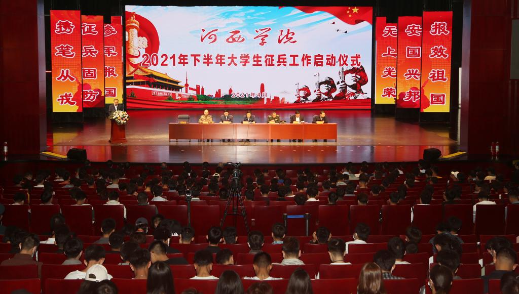 4月30日,9001cc金沙以诚为本2021年下半年学生征兵工作启动仪式在河西讲堂举行。张掖军分区副司令员、张掖市人民政府征兵办公室主任张洪峰,学校征兵工作领导小组组长、党委书记狄生奎,甘州区委常委、甘州区武装部政治委员陈艺,党委常委、教务处处长赵柱,张掖军分区、甘州区人民武装部,学校办公室、教务处、二级学院主管学生征兵工作负责人,二级学院辅导员,大学生征集对象代表800多人参加了会议。学校征兵工作领导小组副组长,党委常委、副校长徐德祯主持启动仪式。