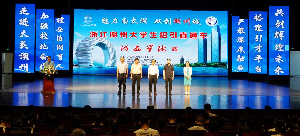 6月4日,浙江湖州城市综合推介会暨2021年湖州市重点用人单位专场招聘会在学校举办。湖州市人大常委会副主任吴伟,湖州市市委组织部副部长、人力资源和社会保障局局长王树,湖州市人大、各区县人力社保部门负责人和27家重点用人单位代表参加了推介会。党委常委、副校长徐德祯,党委常委、教务处长赵柱,学生工作部、相关学院负责人、辅导员、班主任及800多名师生参加了推介会。