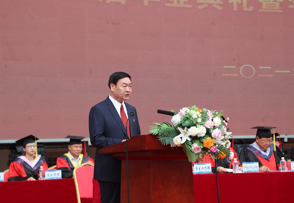 党委书记狄生奎为奔赴新疆、考取研究生、国家公务员、自主创业、在校期间为学校获得荣誉的2021届大学毕业生代表颁发了毕业证、学位证。