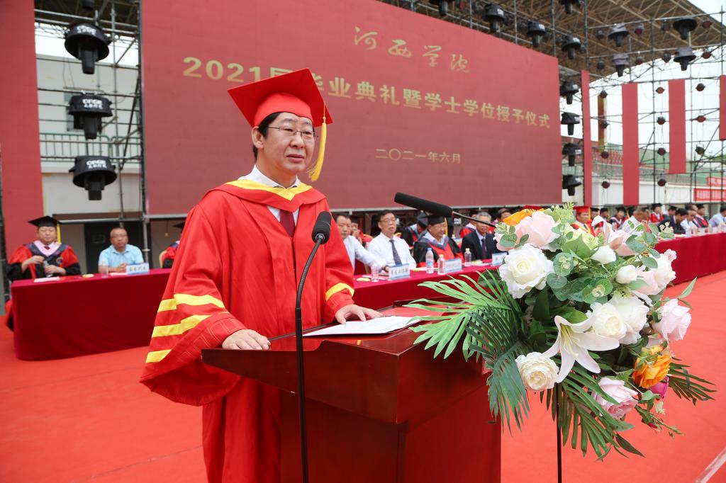 最后,张汉燚校长向2021届校友们发出邀请,无论何时何地,皆乃河西学子,行稳致远,归去来兮,母校牵挂你,母校欢迎你!祝愿所有毕业生同学们一路顺风、前程似锦、事业有成、幸福快乐!