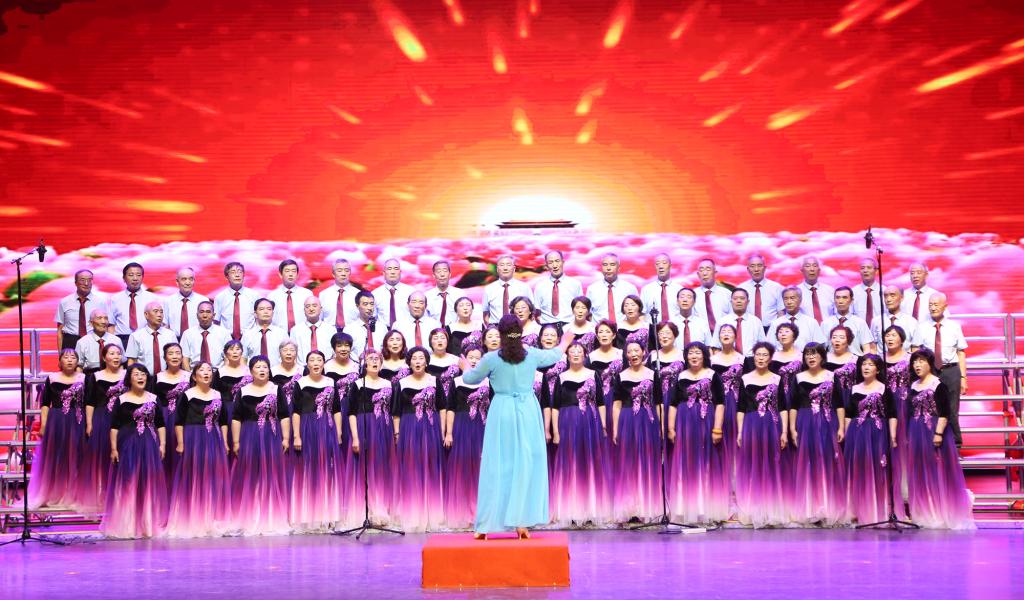 《不忘初心》《东方红》《党啊,亲爱的妈妈》《保卫黄河》《祖国颂》《山丹丹花开红艳艳》《在希望的田野上》《春天的故事》《我们走在大路上》等耳熟能详的红色歌曲依次唱响,赢得现场观众阵阵掌声,掀起一个又一个高潮。