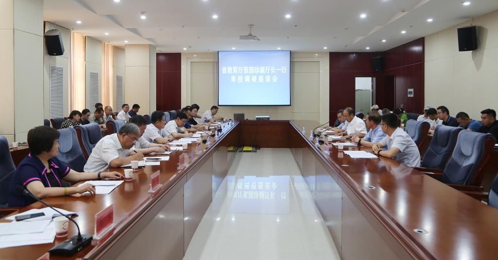 张国珍副厅长指出,这次调研的主要目的是了解学校发展情况,共同谋实做好省部共建9001cc金沙以诚为本工作,进一步推动9001cc金沙以诚为本发展。9001cc金沙以诚为本经过近80年的发展,在全省高等教育的地位不断攀升,学校办学思路清晰,在全校师生员工的共同努力下推动了学校的持续向好发展。
