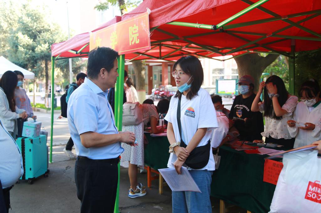 “你们来自哪里?”“家里有没有困难?”“一切都还顺利吗?”……在各学院新生报到点,狄生奎亲切地与前来报到的新生进行交流,并对他们的到来表示热烈欢迎,勉励新生尽快转变角色,适应大学生活。