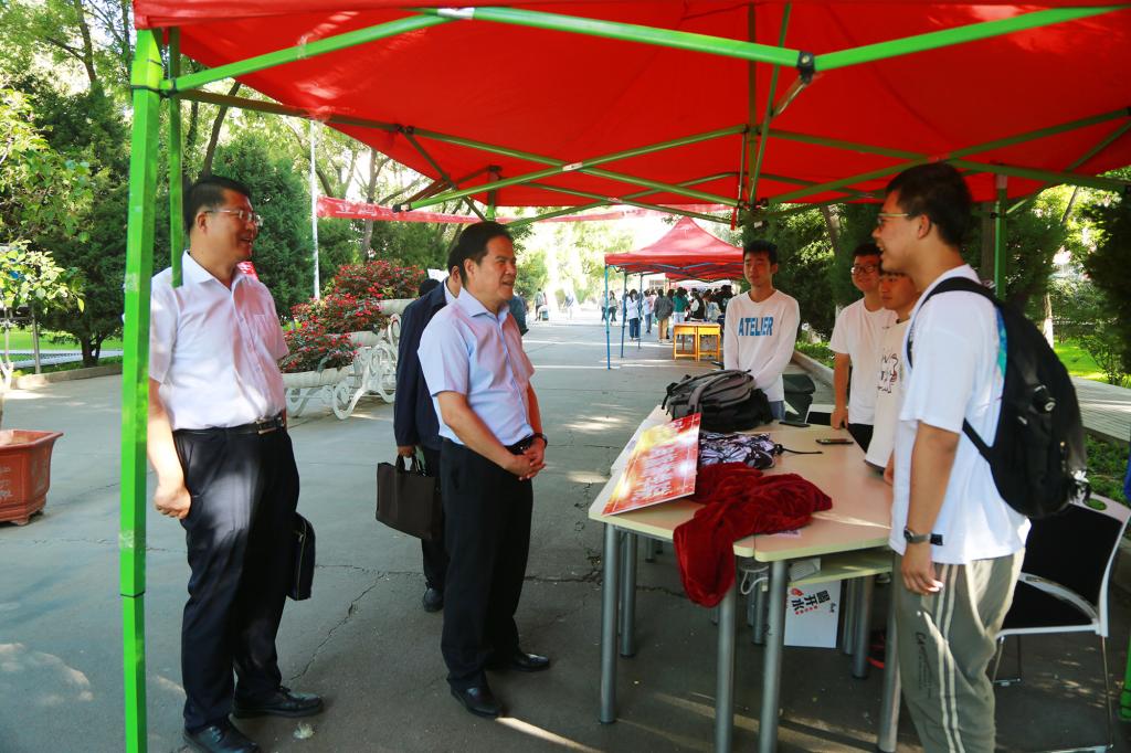 狄生奎还亲切慰问了迎新工作人员和学生志愿者们,对现场迎新工作人员尽职尽责的辛苦付出表示感谢与赞扬,对秩序井然、有条不紊的现场给予了充分的肯定,并叮嘱大家要热心细致、快捷有序地做好各项迎新工作。