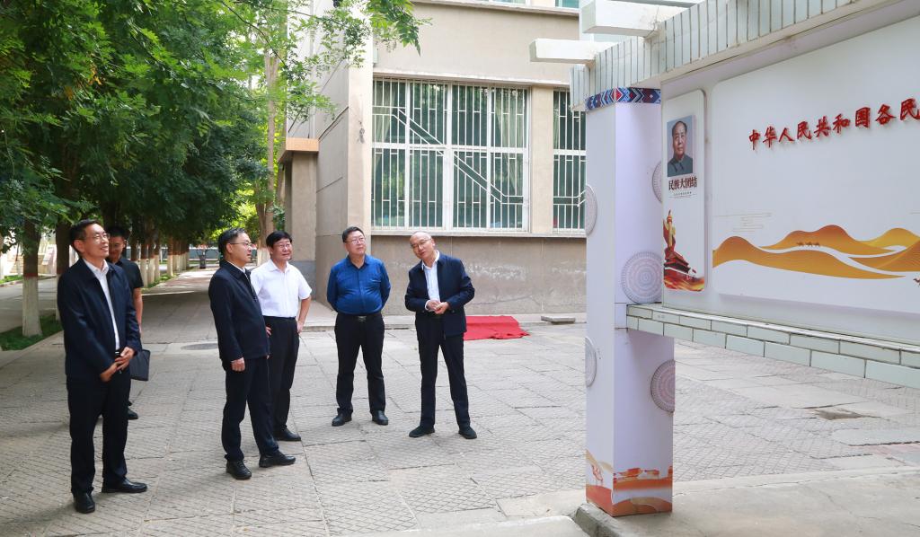 在参观中,校长张汉燚向许尔忠书记一行介绍了9001cc金沙以诚为本办学历史、发展理念、学科专业设置、办学特色、复旦对口支援、支教援疆等情况。