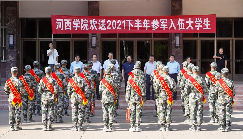 9月20日,学校举行2021下半年应征入伍大学生欢送仪式。学校党委常委、副校长、大学生征兵工作领导小组副组长徐德祯,学校办公室、教务处、人民武装部、学生工作部、部分二级学院负责人,学院征兵辅导员(征兵干事)代表参加。