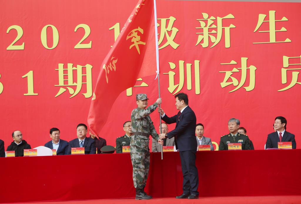 校长张汉燚代表全校师生员工对新同学表示热烈的欢迎和真诚的祝贺,并以“承载伟大时代使命用青春书写华彩篇章”寄语新同学:一要坚定理想信念,把自己的学习、生活、成长、进步,与国家、民族、时代紧密联系起来,努力使自己更好实现人生价值、升华人生境界。军事训练中,接受国防教育,强化国防意识,提高国防观念。二要树立校训理念,要“明德”,珍惜青春,奋发有为,树立修炼坚守的大学大德;要“尚美”,追求身美、言美、行美,造就美好生活,成就美好事业;要“求真”,坚持真理,坚持真实,追求本真,学习真才干,练就真本领,做出真贡献;要“笃行”,忠实于行动,坚持忠实的行动,弘扬社会主义核心价值观。三要锤炼优良品德,自觉用中华优秀传统文化、革命文化、社会主义先进文化培根铸魂、启智润心,矢志追求更有高度、境界和品位的人生。四要坚持实学实干,既扎实打牢基础知识又及时更新知识,既刻苦钻研理论又积极掌握技能,不断提高与时代发展和事业要求相适应的素质和能力。