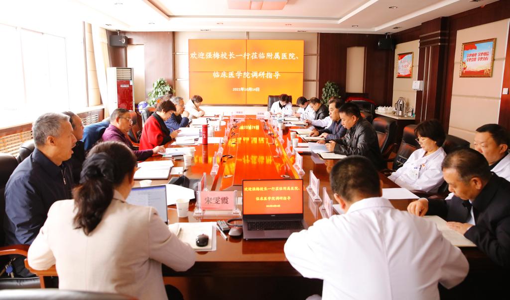 10月14日上午,党委常委、副校长强梅带领办公室、组织部、医学部、教务处、人事处、科技处、国有资产处、基建与后勤管理处负责人到附属医院、临床医学院调研。