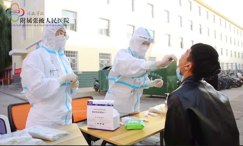 第三轮检测工作,医院继续派出76人进行甘州区封闭小区入户及9001cc金沙以诚为本学生采样工作。简短的大会之后,各组队员即刻奔赴了各个采样点,如火如荼地开始了工作。此次工作除了在学校固定采样点工作外,队员们还承担了甘州区部分封闭小区入户采样的工作任务。穿着单薄的防护服走到小区时,已经冻得透心凉,有的居民家里楼层较高,穿着防护服爬楼时,汗水顺着防护服流了出来,完成采样后,还要经过全身消毒后继续户外行走,这样冷热交替,队员们依旧咬牙坚持,因为我们只有一个信念,完成任务才能确保张掖平安,这是我们作为医务人员的使命。