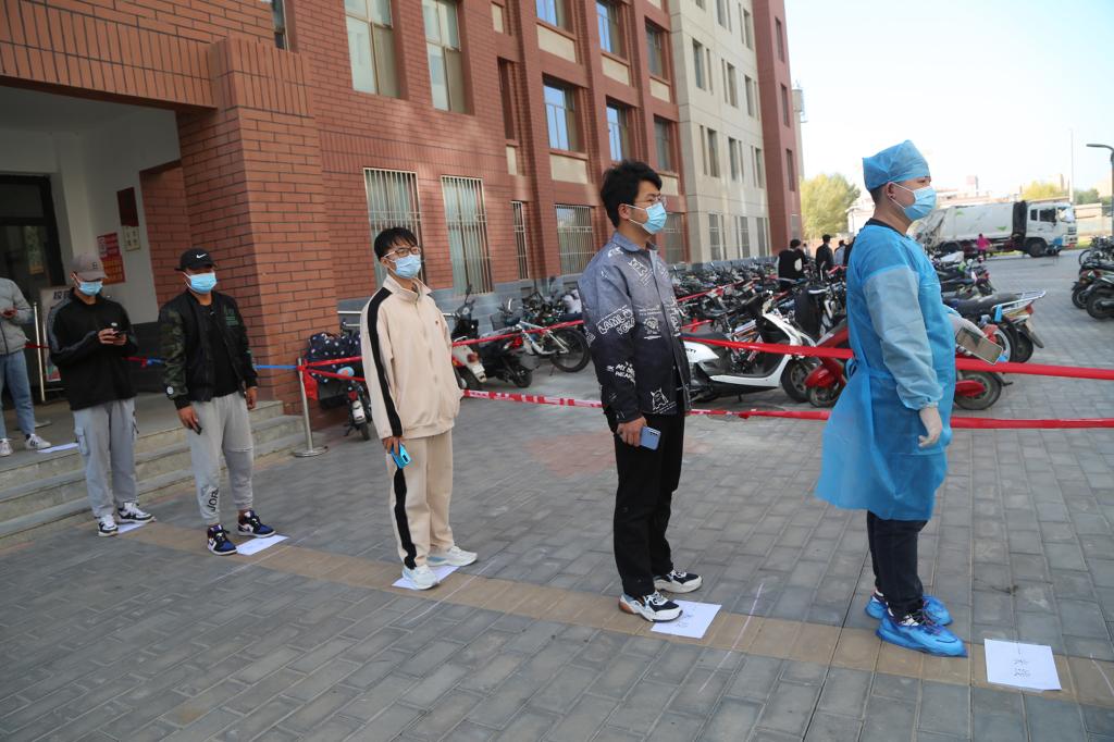 此次核酸检测学校本着“巩固前期封闭管理的防控成效,最大限度减少人员流动聚集,最大限度减少活动范围”的原则,由附属医院、附属二院医护人员组成12个采集点,学生以公寓楼为单位,在所在楼门厅进行采集,学生以宿舍为单位,分批、分时段进行检测,有效避免了聚集、扎堆,包抓楼宇临时党支部、学院负责人、辅导员、班主任及楼管员负责在现场落实一米线、戴口罩、测体温、核验码等组织工作,保障检测工作高效率完成;在家属区设2个采集点对教职员工、离退休人工、临聘人员、校内务工人员、校内经营户、校内居住教职工家属按楼宇、分时段,由临时党支部、楼长、单元长及时通过电话、居民微信群、钉钉群发布点位实时排队情况,引导大家分批、错时前往,安全、高效接受核酸检测。此外,检测组为隔离点留观人员和行动不便的教职工、家属提供上门服务,确保应检尽检。