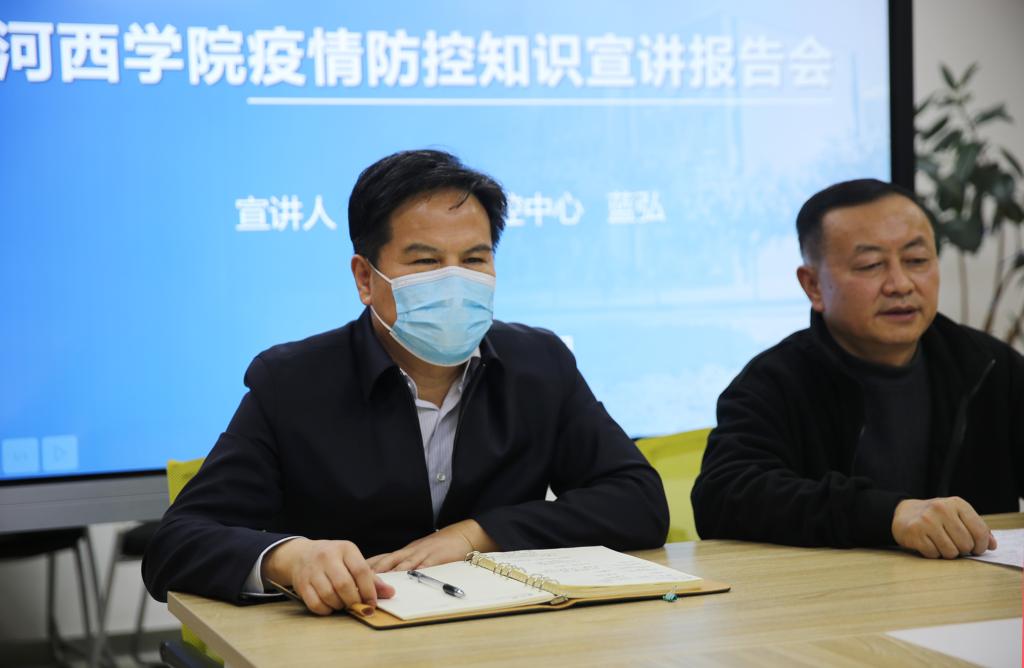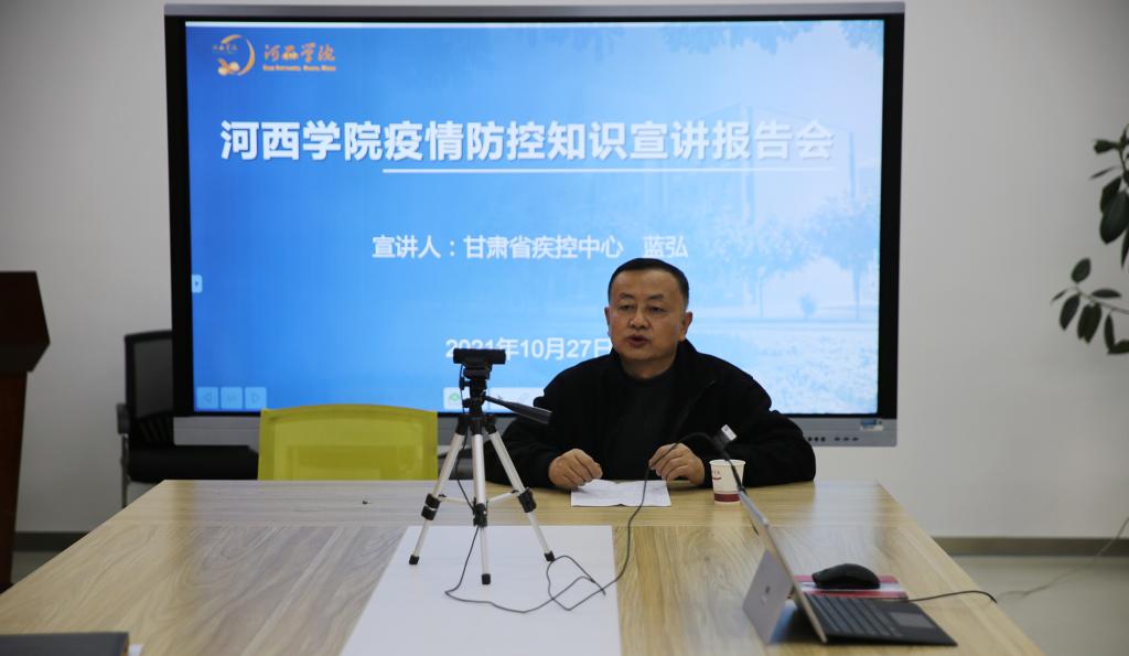 2021年10月27日,学校举办新冠肺炎疫情防控知识专题辅导报告会,省疾控中心知名专家蓝弘应邀作专题讲座。党委书记狄生奎主持报告会。