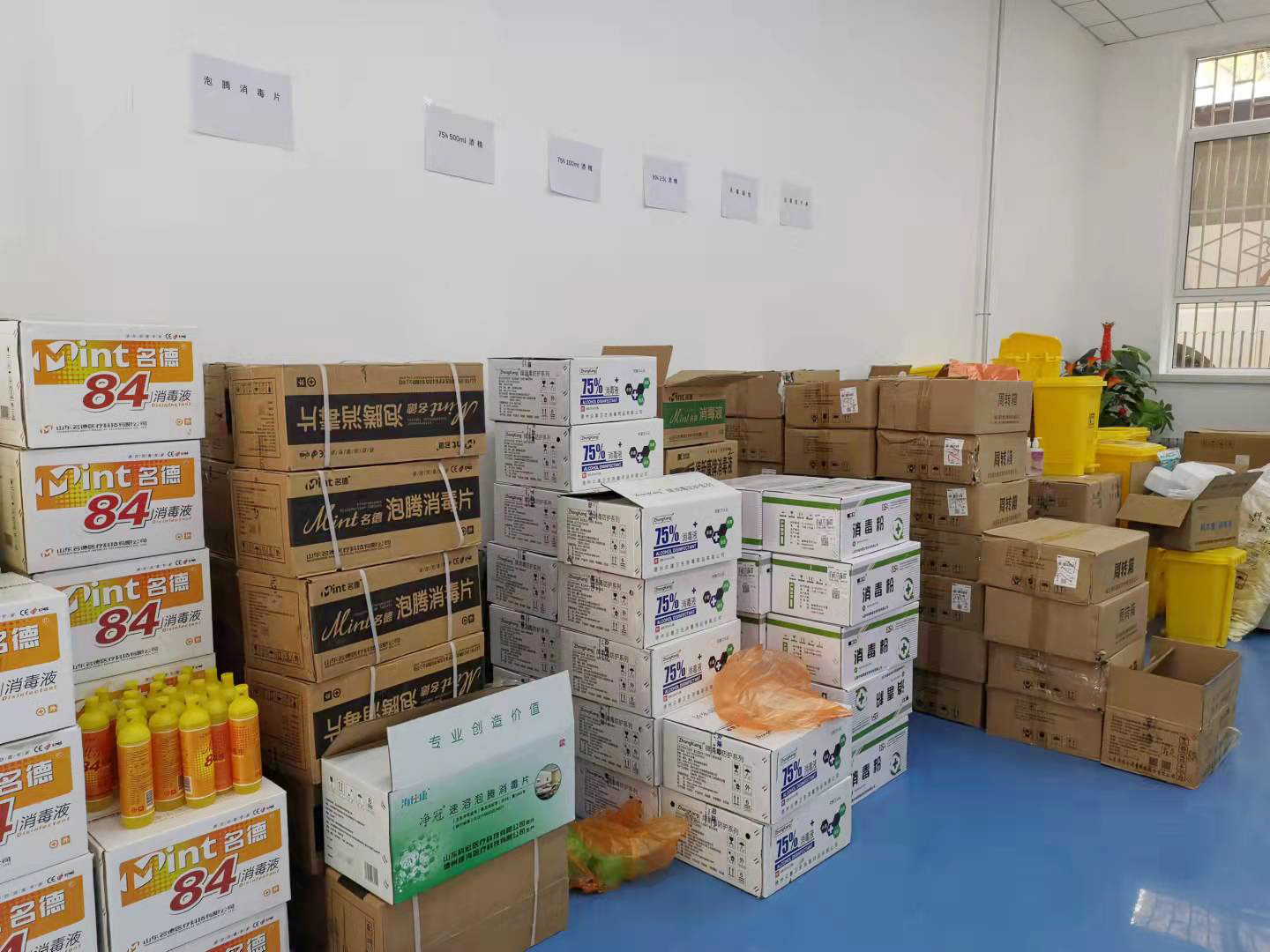 学校医疗物资储备组发挥临时党支部作用,调整充实工作力量,明确职责,建立工作流程、细化责任分工,紧盯关键环节,补齐短板弱项,严格落实24小时应急值守,10月20日至26日,迅速向每位学生每人发放10支一次性医用外科口罩,向附属二院、学生公寓、餐厅、重点岗位、二级学院共发放一次性医用外科口罩204560个,N95口罩10个,75%酒精100ml260瓶,500ml 40瓶,2.5L 22桶,84消毒液500ml70瓶、84泡腾片1389瓶,一次性隔离衣90套,一次性防护服 149套,乳胶手套 3382双,额温枪13个,垃圾袋5把,免洗手凝胶236瓶,抗菌洗手液15瓶,护目镜45个,为防疫工作做好有力保障,筑起牢固的防疫屏障。