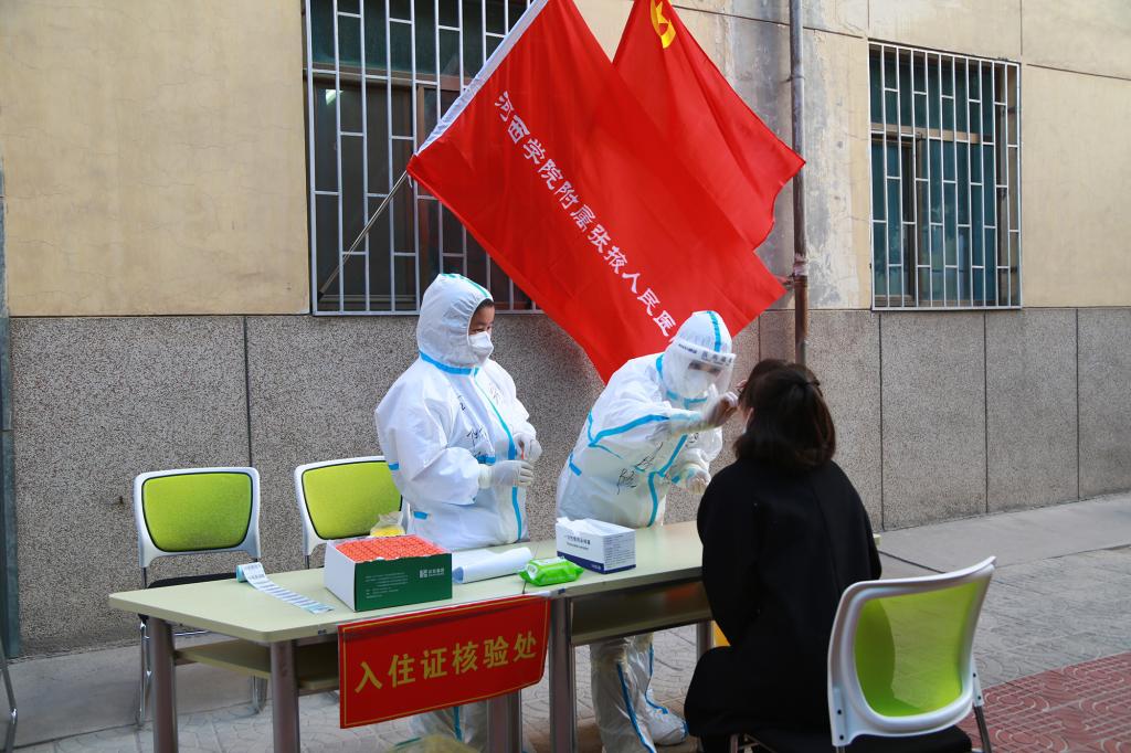 附属张掖人民医院组建志愿服务队,300余名医护人员24小时全天候服务,全力保障核酸采样工作,落实防疫责任。医院核酸检测实验室24小时运转,全体人员昼夜奋战、通宵达旦,全力保障市民核酸检测需求。科室老党员赵岩,2020年医院百佳人物之“抗疫之星”。她的父亲10月18日因病去世,20日医院日核酸检测量猛增,原本请了假的她主动返回科室加入核酸检测组,在强大的工作压力下,身体出现不适,短暂休息后,重返岗位,顺利完成本组检测任务,在危难面前彰显一名共产党员的担当。