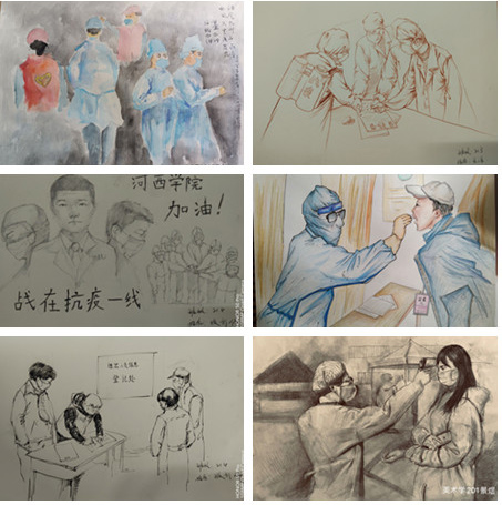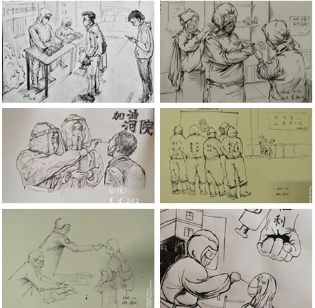 同学们表示,面对疫情,冲锋在前的广大医护人员与各行各业“逆行者”留下了一道道“最美逆行者”高大的背影。那些被口罩勒到破皮的脸颊,被汗水浸到泛白的双手,疲惫不堪的身影,日夜兼程的援助物资,他们拼尽了全力与时间赛跑、跟病毒搏击,在疫情面前筑起了一道道安全防线。没有身在一线的逆行者,哪有我们现在的平安。虽然不能站在一线抗击疫情,但可以用手中的画笔记录下她们辛苦奋斗的身影,用画笔记录这一个个感动的瞬间,用画笔为他们加油鼓劲,我们坚信,只要携手并进、同舟共济,一定会打赢这场疫情防控阻击战。