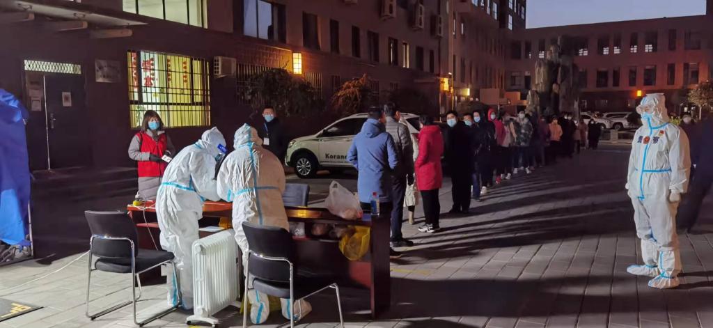 志愿者,值班值守,彰显责任担当。值班值守,消杀登记,值守的不仅是责任,更是安全,民革党员们坚守在第一线,气温低,任务重,风险大,但是没有退缩,党员邓金老师在网课后继续值守在公寓楼口,党员禹兴海老师在所在小区内当志愿者,帮助组织核酸检测,确保组织有序有力。