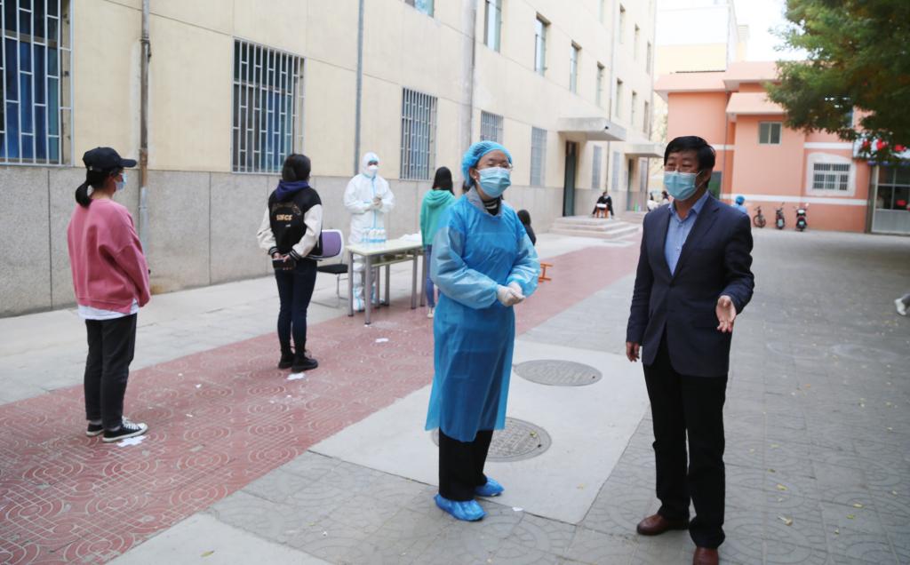 本轮核酸检测,仍然坚持分区设点,点动人不动,最大限度减少人员流动的原则,共设置核酸采集点23组,比上一轮增加5组,采集过程中,师生们自觉规范佩戴口罩,保持“一米线”间隔距离,自觉维护现场秩序,积极配合扫码测温,确保了采样工作高效完成。核酸检测组的医护人员克服重重困难,长时间连续作战,完成了校内所有学生、教职员工、离退休教职员工、临聘人员、校内务工人员、校内经营户、校内居住教职工家属的采样工作;针对重点群体,学校安排检测采样人员入户采样,实现了检测采样分类更加精准、安排更加合理、效率更加快捷,组织更加有序,实现了应检必检、应检全检,不漏一人。