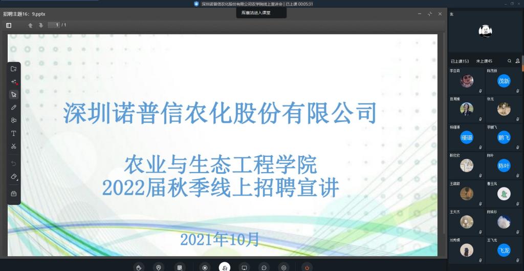 受新冠疫情影响,为了帮助学生早就业、就好业,推进毕业生就业工作正常开展,经与用人单位沟通,近日,农业与生态工程学院邀请企业分时段在学院毕业生钉钉群进行了线上招聘宣讲,全体学生线上参与活动。