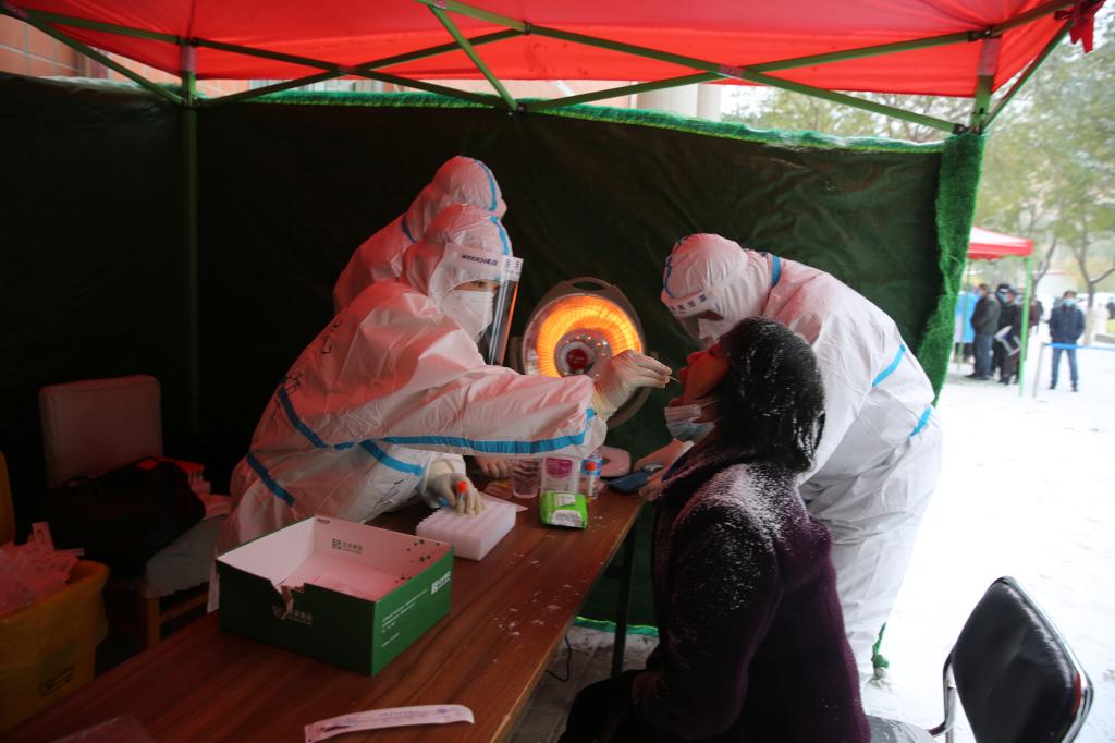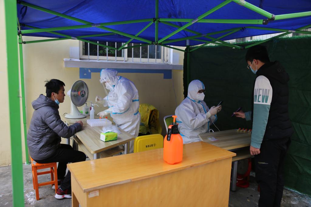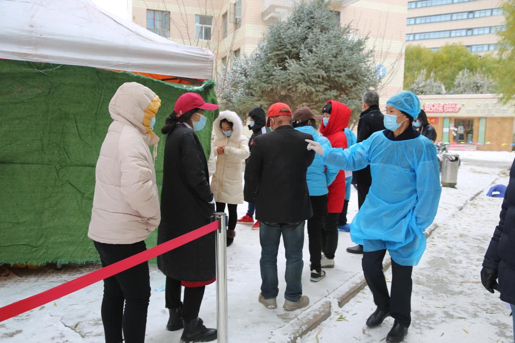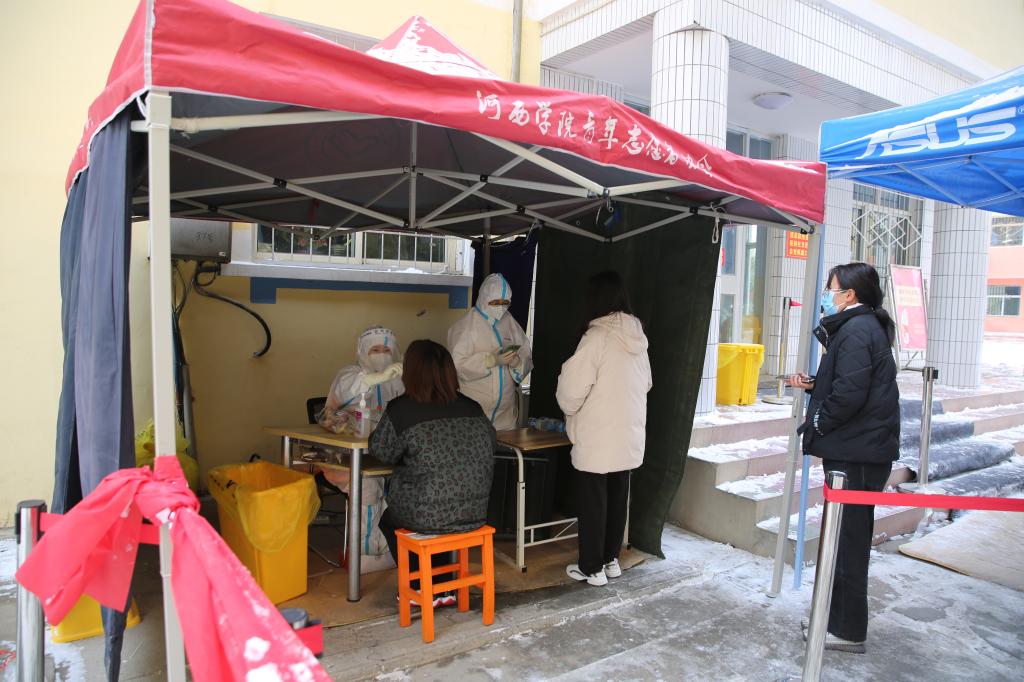 为做好此轮核酸检测,学校全员参与,全力保障。检测点包抓学院领导和工作人员7点到岗,开始扫雪,为了不让同学们摔倒,他们一遍遍清扫积雪,铺防滑毯,布置核酸检测点;整个过程,他们站在雪地里组织同学,有序开展;志愿者们冒着严寒,帮助引导;学校领导亲临一线问候医护人员,为每个采集点临时搭建了简易帐篷,安装了电暖气,方便医务人员取暖,后勤部门为医护人员准备暖手水瓶,医务人员们争分夺秒,广大师生们积极配合,全校上下一条心、拧成一股绳,为战胜疫情贡献力量。