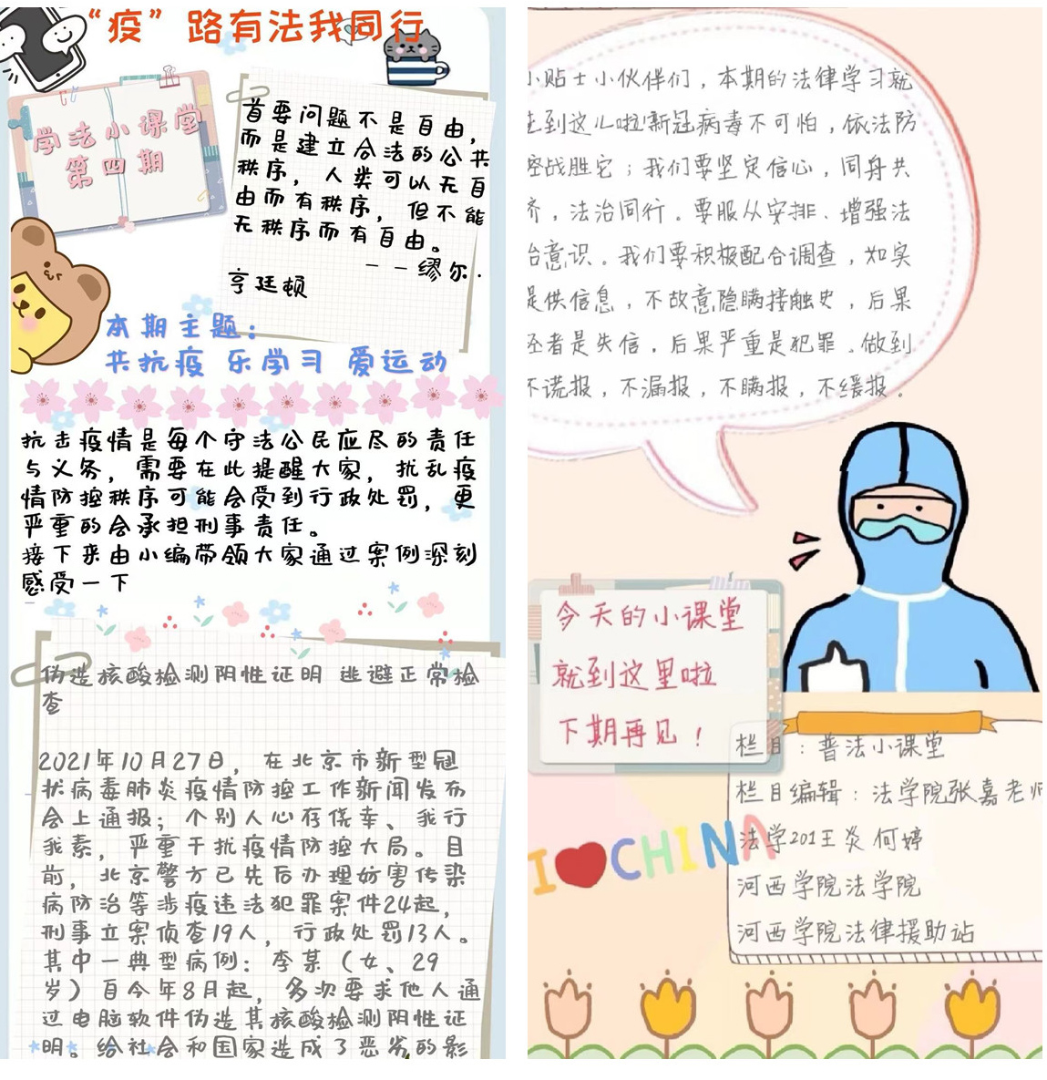 自疫情发生以来,法学院法学专业师生充分发挥专业优势,密切结合疫情期间法律问题展开“‘疫’路有法我同行”系列普法活动,目前已举办四期。