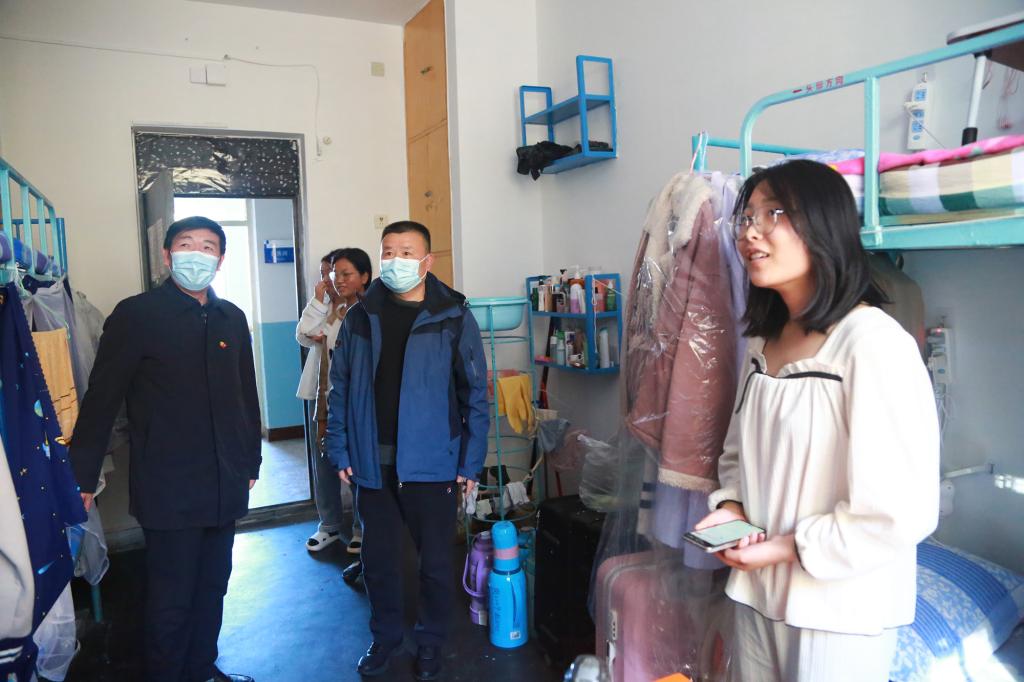 检查组一行先后来到学生公寓,食堂、超市详细了解学校封闭管控、学生公寓疫情防控、学生餐厅供餐、物资保障及各项防控措施落实情况。